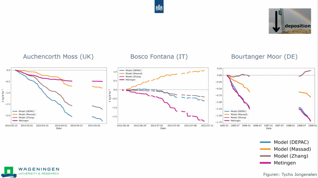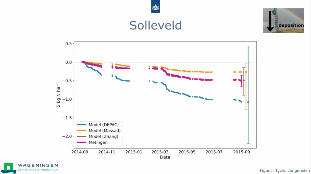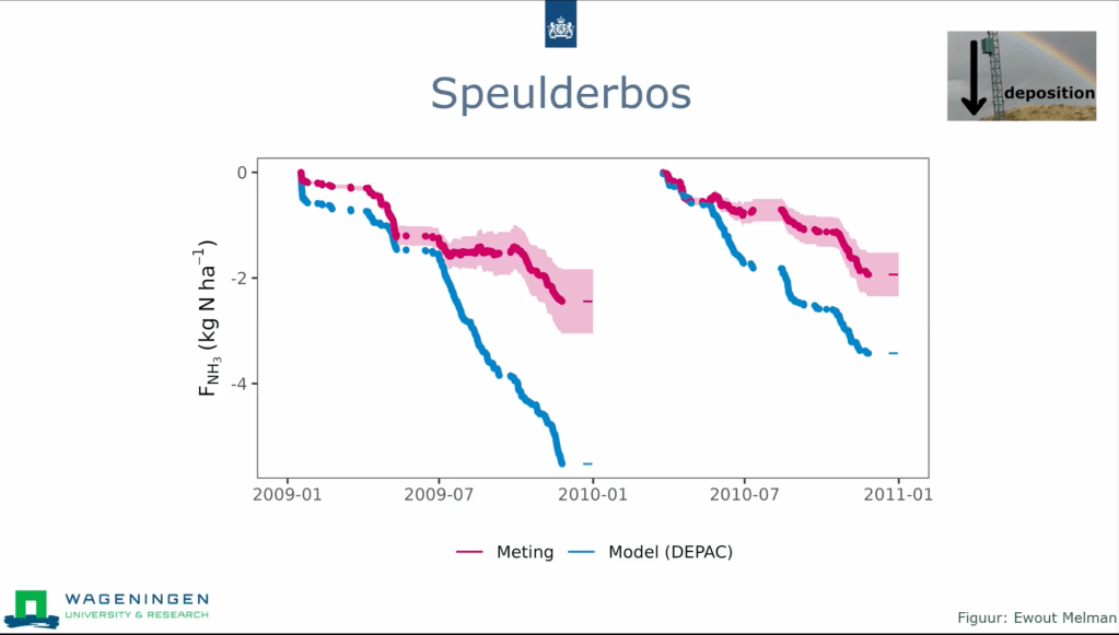 Daarnaast bespreekt Van Zanten het DEPAC-model, een gangbaar model voor droge depositie. Volgens haar is DEPAC nog niet voldoende gevalideerd voor de specifieke landklassen, vegetatietypes en lokale omstandigheden. Dit betekent overigens echter niet dat DEPAC onderdoet aan andere depositiemodellen zoals MASSAD of het ZHANG-model; ieder model kent zijn sterke en zwakke punten, afhankelijk van het gebruiksscenario. De uitdaging ligt erin dat de foutmarges in deze modellen nog aanzienlijk zijn, soms met tientallen procenten afwijking, wat betekent dat er nog veel meer praktijkonderzoek nodig is.