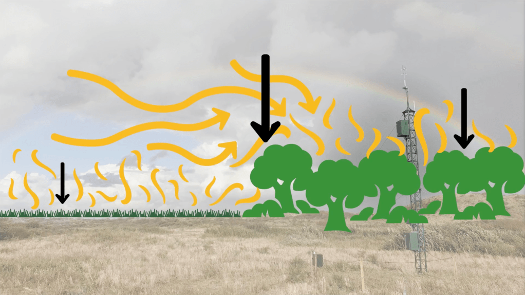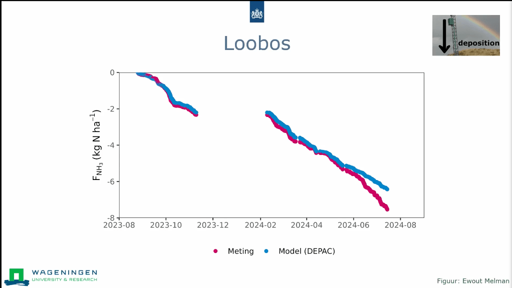 Een praktisch voorbeeld uit haar onderzoek zijn de metingen van droge depositie van ammoniak (ammoniak die direct vanuit de lucht op de grond terechtkomt, zonder regenval) boven het Loobos-bos bij Wageningen University & Research. Hier worden halfuurlijkse metingen vergeleken met modeluitkomsten. ‘Als de modelresultaten overeenkomen met de meetresultaten, begrijpen we het proces beter. Bij grote afwijkingen moeten we onderzoeken waarom het proces in het model niet goed wordt weergegeven,’ legt Van Zanten uit. Dit proces van modellering en validering is essentieel om de nauwkeurigheid van voorspellingen te verbeteren.