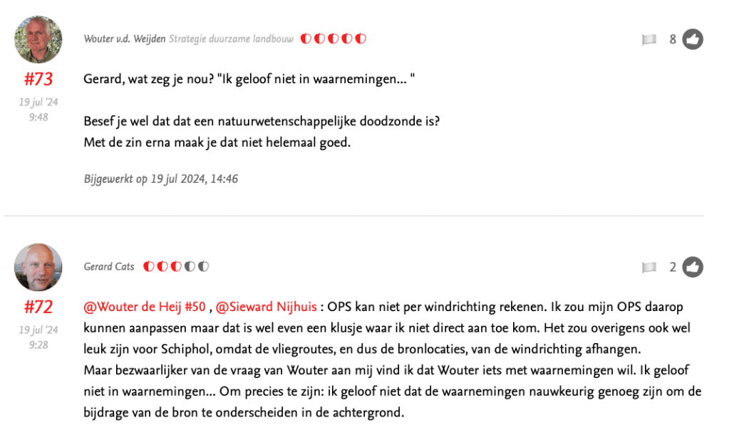 “Dit is voor mij een heel fundamenteel punt. Ook Gerard Cats heeft ooit gezegd ‘ik geef niet om waarnemingen’ maar deze professor zegt dus nu ook ‘modellen kunnen nauwkeuriger zijn’, maar dat kan je in mijn ogen nooit beweren als er geen nauwkeurige waarnemingen zijn. Vrij fundamenteel standpunt.”