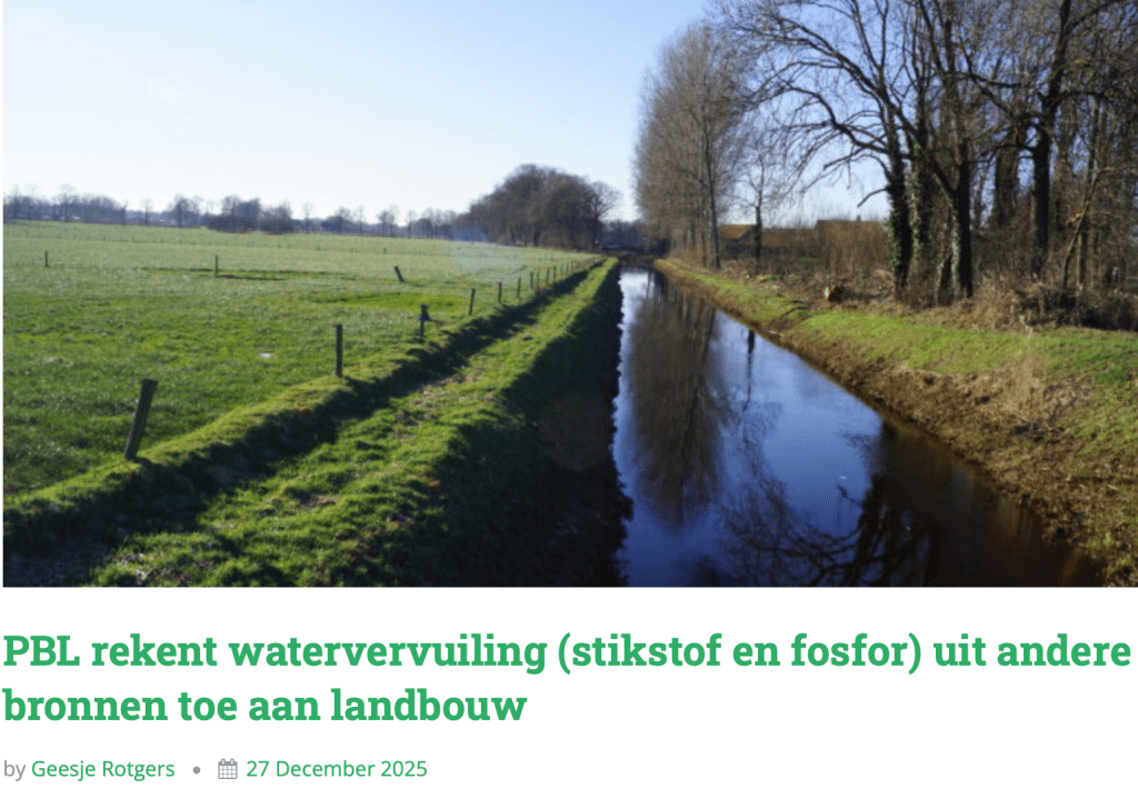 Op 18 november 2025 verscheen via het Compendium voor de Leefomgeving een boodschap die gemakkelijk “blijft hangen” in politiek en media: ongeveer 60 miljoen kilogram stikstof in het oppervlaktewater zou “afkomstig zijn uit de landbouw”, goed voor “ruim de helft” van de totale stikstofbelasting. (Melkvee.nl)