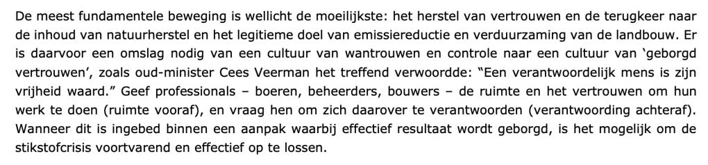 Het is belangrijk om te benadrukken dat de bijdrage van Ros en De Vries een van de meest waardevolle in het huidige debat is. Het biedt structuur, realisme en een duidelijke route vooruit. Ik denk dat deze position paper serieus opgepakt moet worden tezamen met het recente WUR-Rapport.