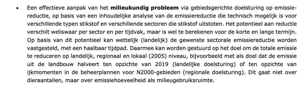 - emissieruimte per bedrijf (bespreekbaar, mits niet per hectare of per GVE of dier).
