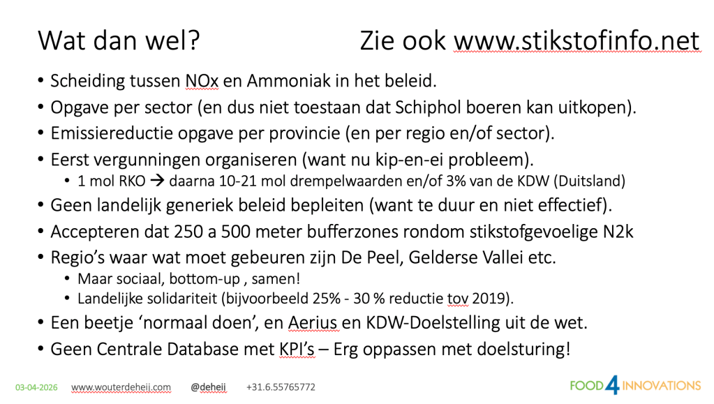 Een meer rationele benadering ligt daarom voor de hand: differentiëren naar regio. Denk aan bufferzones rond kwetsbare natuurgebieden, gerichte aanpak van hotspots en daarbuiten ruimte voor een meer ‘normale’ bedrijfsvoering.